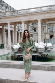 CELINE is pleated patchwork midi dress with plissè detailing.