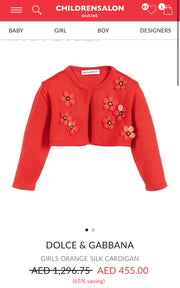 DOLCE & GABBANA GIRLS ORANGE SILK CARDIGAN