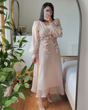 The AURELIA DRESS is a beautiful V neck dress with cascading 3D appliqué flowers
