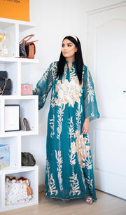 The NOOR is a beautiful sequin floral embroidered dress / kaftan / robe available in 3 shades
