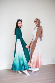 YASEERA is a modest ombre abaya/kaftan/dress with a plisse detailing
