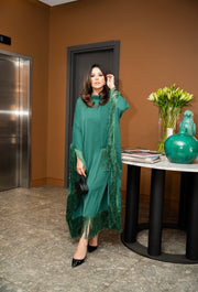 HYAT is a vibrant and elegant batwing sleeve tassel dress/kaftan. It boasts a signature kaftan silhouette in a range of hues, detailed with an elegant high neck and sweeping fringes along the edges.