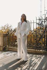 SUSAN is a luxury notched long sleeve blazer with 3D rose flower appliqué
