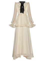 DONNA is a elegant O neck asymmetrical dress with ruffles & a bow tie detailing