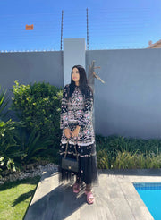 DILARA is a Ribbon Bouquet Gown in Graphite / Pink Multicolor. This gown is intricately designed with embroidered bouquets of flowers in rich tones, inspired by a 1930s vintage print.Beautifully adorned with delicate lace trims for signature detailing. The skirt features layers of tulle.