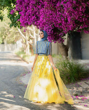 MAYA is a two-piece ensemble for a stylish and versatile look. The blue and yellow palette radiates vibrancy and sophistication, offering a bold and elegant colour combination