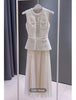 ALINA is a set featuring a sequin tweed vest and a pleated skirt