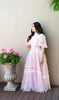 The BLOSSOM DRESS is a bespoke floral sequin patchwork bodice with a layered ruffle detail skirt . The sleeves also boast an appliqué beading with a layered ruffle finish.