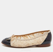 Chanel Beige/Black Lace and Patent Leather CC Cap Toe Ballet Flats Size 37