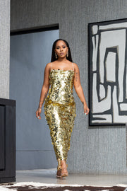 MIHLALI is a spaghetti strap sparking dress with an exaggerated sequin detailing