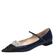 Miu Miu Blue/Black Satin Crystal Embellished Mary Jane Pointed Toe Ballet Flats Size 37