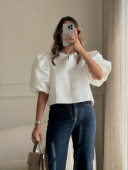 The MOLLY BLOUSE is an elegant round neck edge top that can also be worn open as a jacket, the Puff Sleeve signature blouse is stunning in its simplicity. Fastened with simple hidden hook and eyes and cut with a gentle swing shape, this top looks fantastic styled with everything from jeans to dresses.