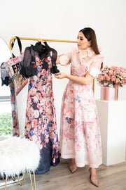 PARISAA is a luxury floral print dress with 3D appliqué detailing