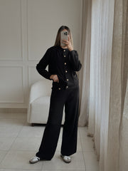 The PIPPA CO ORD is a solid 2 piece knit set perfect for winter ❄️ a long sleeve button up top with a wide leg pants