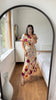 The maxi length adds a touch of regality, making it a perfect choice for formal events, weddings, or any occasion where you want to make a lasting impression. The play of colors and textures in the 3D lace fabric adds depth, making this dress a true work of art.